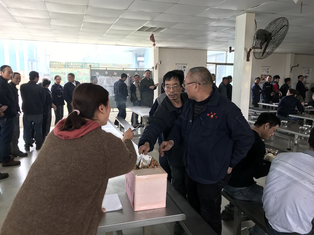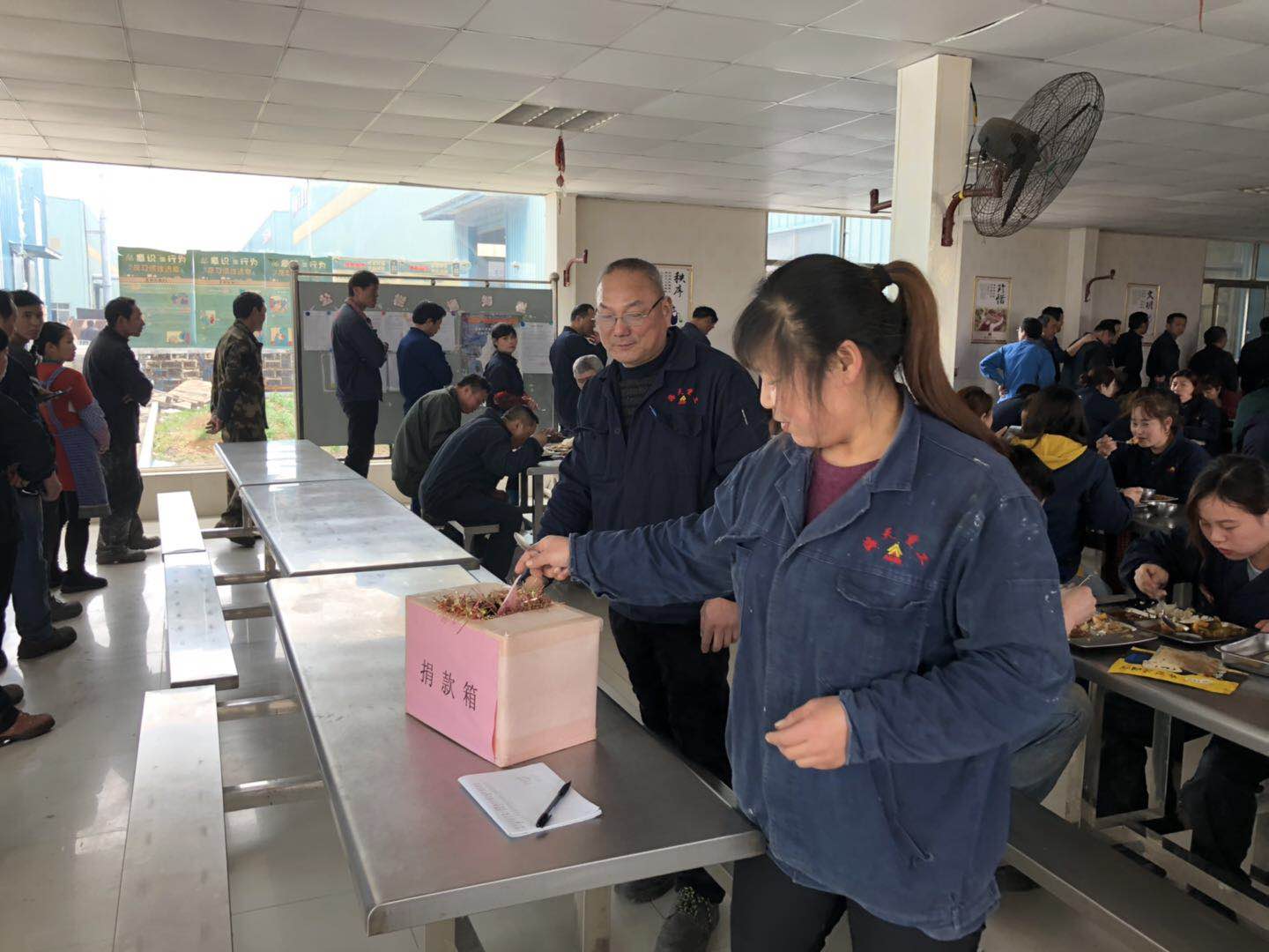 馬鞍山市海天重工科技發展有限公司清理車間員工夏陽娣兒子近日身患重病,所需治療費用昂貴,身為家中頂梁柱的夏陽娣家境并不富裕,海天公司倡議在公司內開展為夏陽娣捐款善舉活動,倡議立刻得到了海天公司全體同仁的呼應。3月26日中午,利用員工就餐時間,公司員工紛紛自愿為夏陽娣捐款,10元、20元,你50元,我100元,一張張凝聚著海天員工一份愛心、善心和真情投進捐款箱,短短30分鐘,籌集捐款近1萬元。當公司領導派專人將捐款及時送到夏陽娣家人手中時,家人捧著這飽含海天員工愛心的捐款十分感動:你們不僅僅送來了錢,更是送來了海天的溫暖,送來了海天員工的真情!并表示積極配合醫生,幫助他振作精神,樹立戰勝病魔的信心,早日康復。