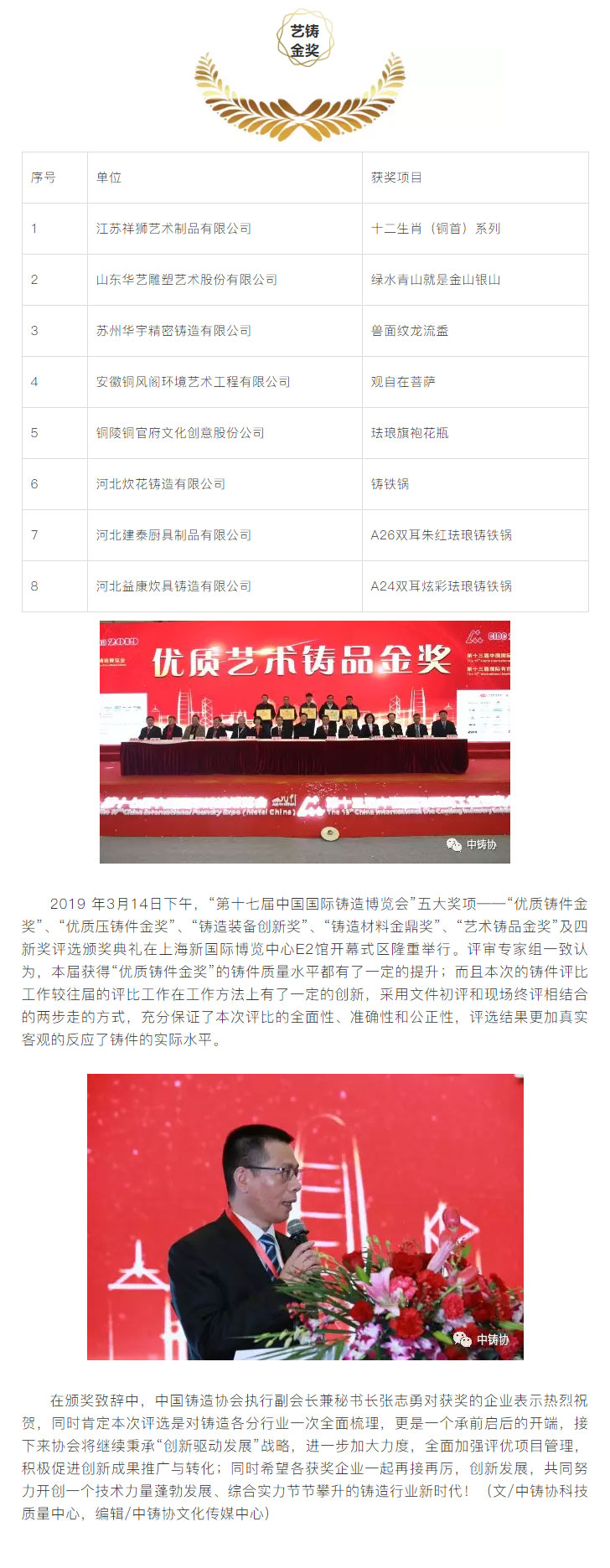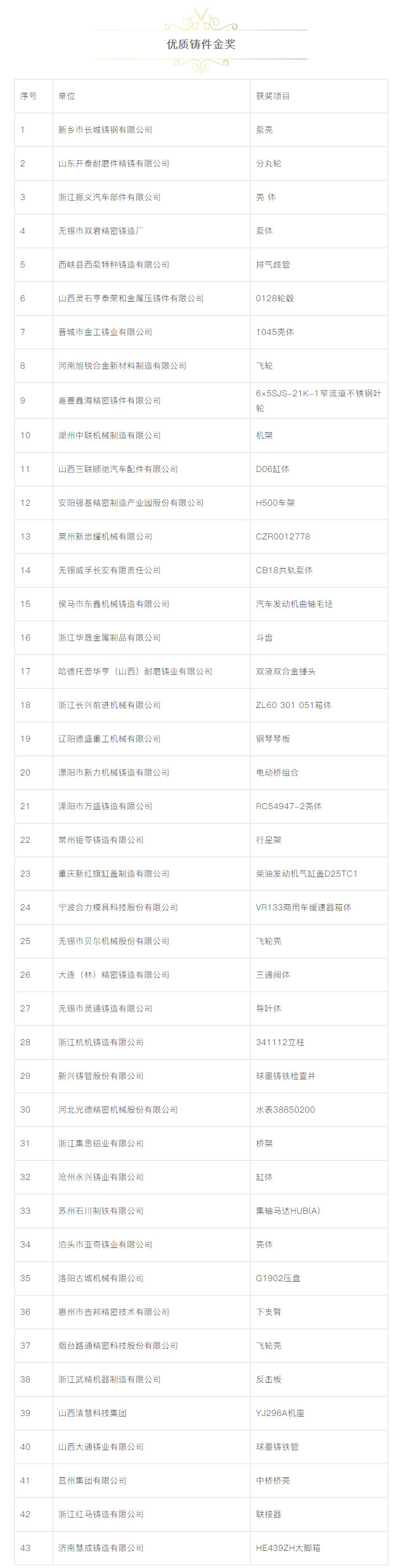 為了進一步鼓勵鑄造行業科技創新,推動鑄造行業質量工作,更好地服務于鑄造行業轉型升級,本著“評先獎優”’的原則,中國鑄造協會在“第十七屆中國國際鑄造博覽會”及“第十三屆中國國際壓鑄工業展覽會”期間,繼續對參展的鑄件、壓鑄件、鑄造裝備、鑄造材料、藝術鑄品及四新技術開展了評比活動。本次評選活動得到廣大參展商的大力支持,共有154家企業的200余件展品參與申報評優。
